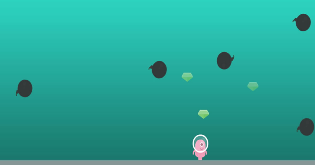 Your objective in this game is to gather diamonds, but beware of various obstacles in your path. You must skillfully evade bombs, jumping and taking cover until they detonate. Aim to collect as many diamonds as possible to unlock a character with a double jump ability. This will facilitate reaching higher diamonds and maximizing your score.
