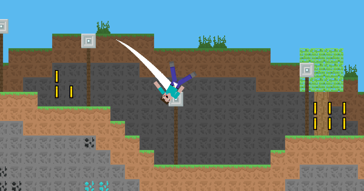 Hello, newcomer! You now have the ability to soar from one location to another by using a net. Exercise caution, as falling to the ground can be lethal; it’s a treacherous landscape that poses a constant threat to your life. Utilize the net and remember to jump. Be alert for the sharp, spinning blades and the perilous wooden thorns scattered throughout – avoid touching them at all costs. Gather gold along your journey to amass the greatest fortune!